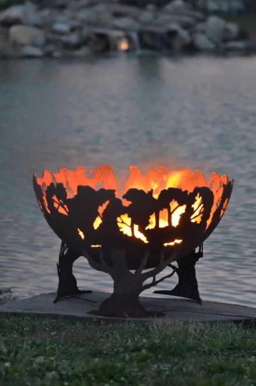 This sculpted forest fire pit makes such a dynamic statement.