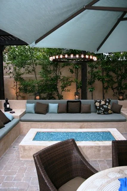 Comfy, cozy, and contemporary! This amazing built in fire pit creates the perfect headquarters for entertaining.