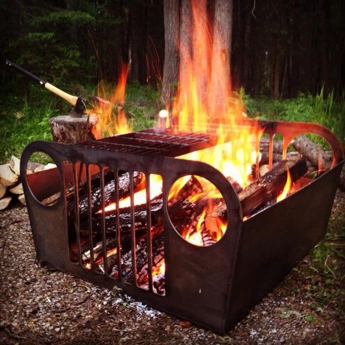 Who would have thought that an old jeep grill would make such a great frame for a DIY fire pit? So clever!