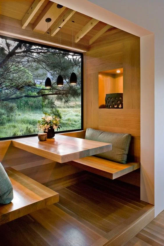 You can maximize space with this snug booth placed in an unused corner of your house.