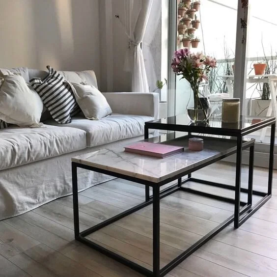 This is ideal for small homes and apartments. This steel and marble nesting table set is trendy, elegant, and so adaptable.