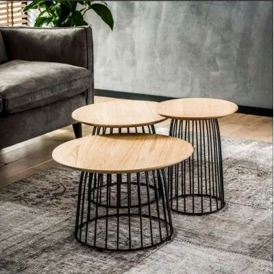 Ideal for the smallish but trendy living rooms, this coffee table set of three nesting tables is whimsical, rustic, and modern.
