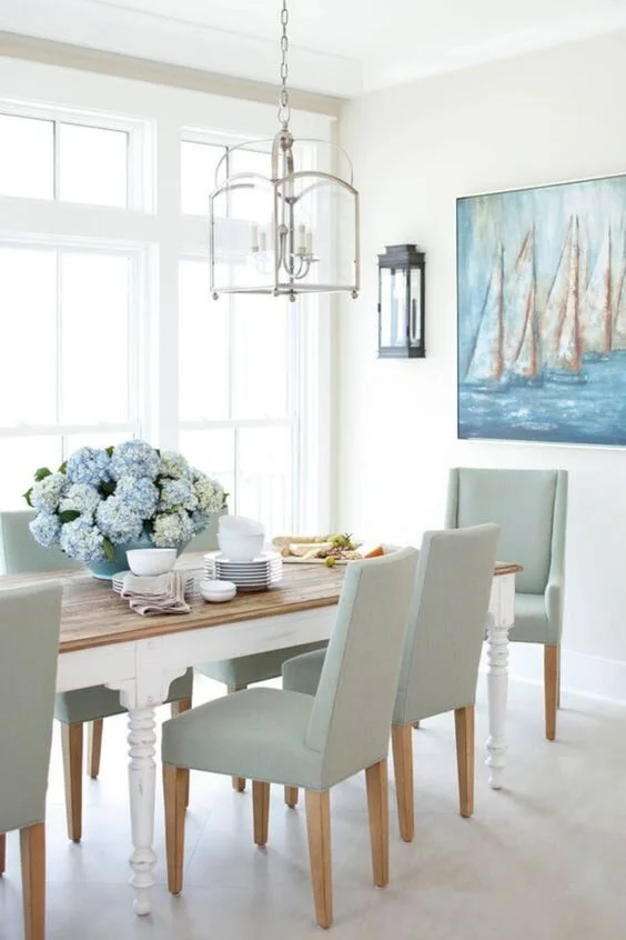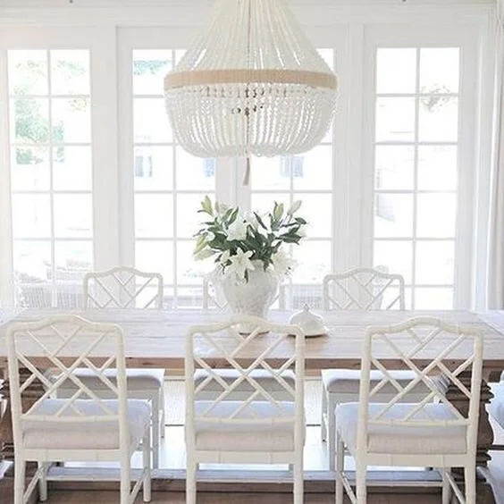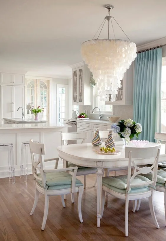 You can complement your bright, breezy, and charming dining room with the perfect lighting accent. This shell beaded chandelier reflects the airy and carefree vibe of coastal interiors.