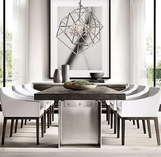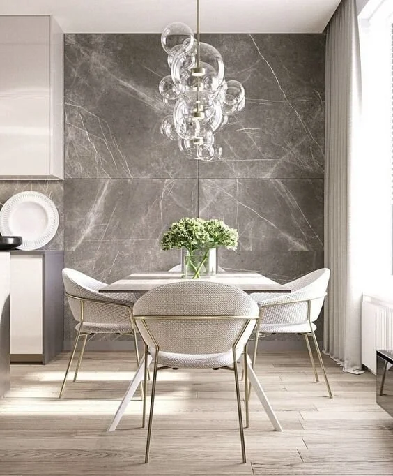 This modern piece is the perfect accent for this luxurious and elegant dining room.