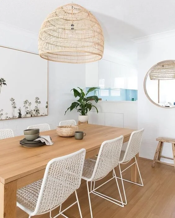 Chandeliers and lighting made from natural materials like rattan, bamboo, or hemp are super popular in lakeside, coastal, and farmhouse interior designs.