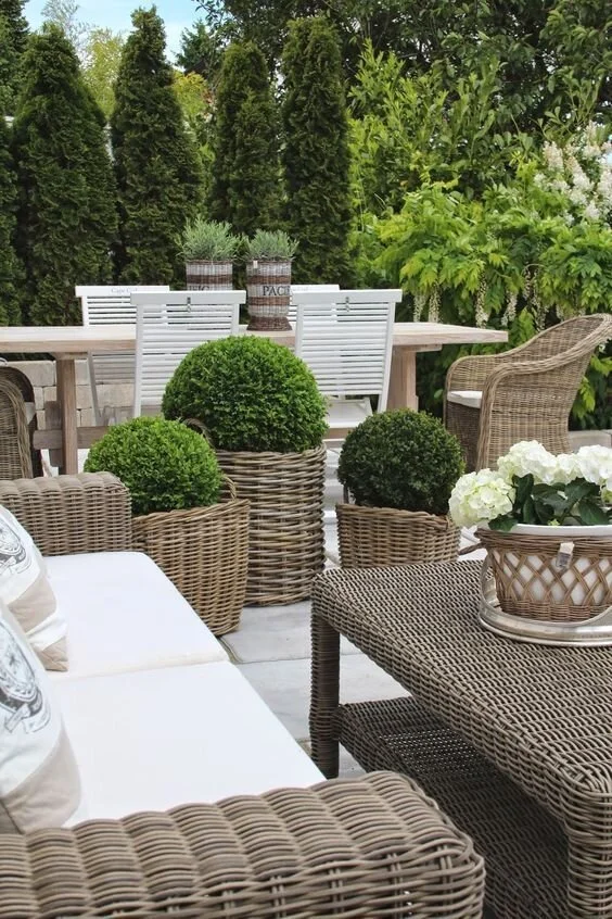 The neutral tones of wicker or bamboo blend in just perfectly with the greens of the surroundings.