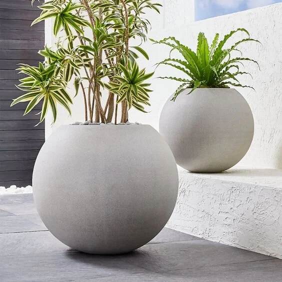 These stunning spheres are so modern and just perfect for a minimalist landscaping design. The grey concrete planters are cool, functional, and really elegant.