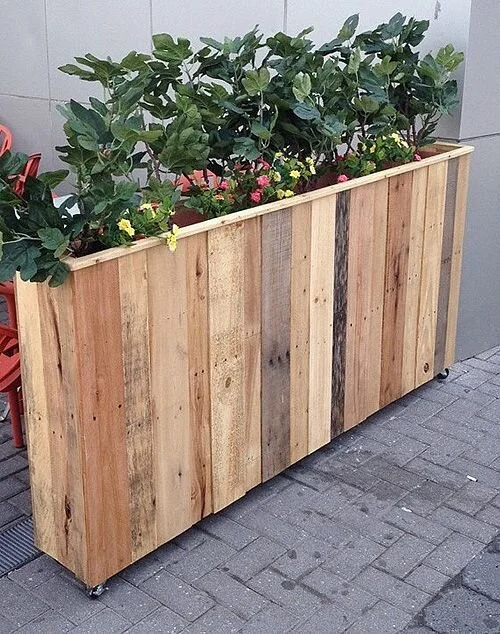 This innovative planter design is so functional and creative. It’s made from recycled wood pallets, and the slim and tall planter also has wheels, which makes it much easier to move around.