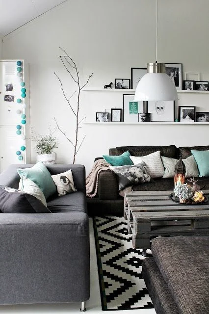 You can truly never go wrong with a grey and white combination for your living room. I love that you can perk up this elegant color scheme with splashes of bright details.