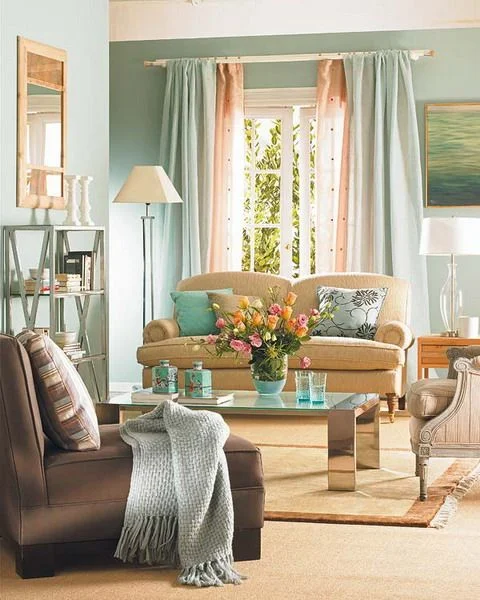 Just add some pastel touches to the more somber tones in your living room to get this pretty, welcoming, and elegant style.