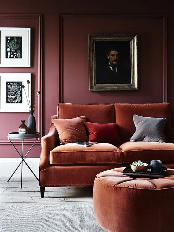 You can totally update a drab and overwhelming old living room just by injecting some color! I love how the deep rose walls complement the wine velvet furniture and energize the once dour atmosphere.