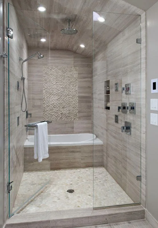 The clean and minimalist atmosphere you get from a stone and glass bathroom is definitely gaining popularity. It’s a combination that just works so well together for a modern feel.