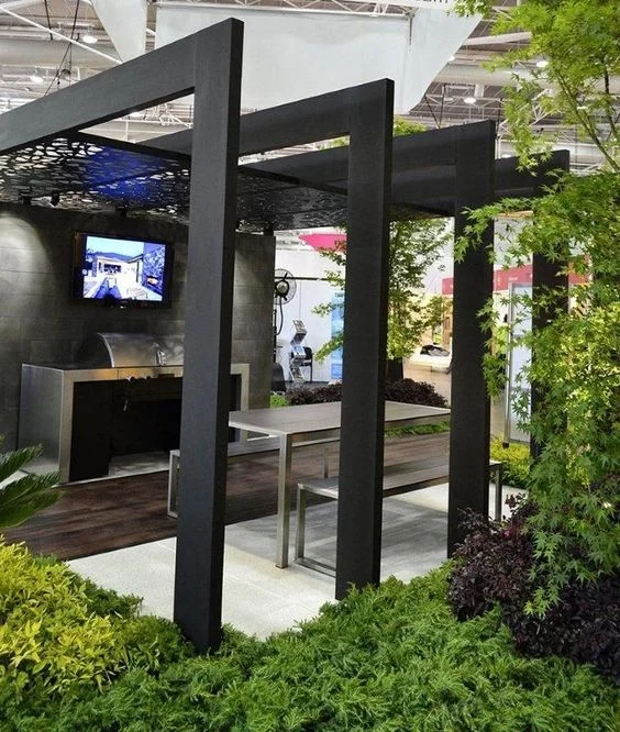 A basic black pergola will define your property without taking any attention away from your perfectly landscaped and manicured yard.