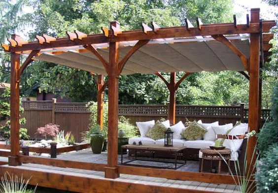 You can infuse an ethereal charm into your garden pergola just by adding gauzy curtains to one or more sides. And you can use different curtain materials to match your needs.