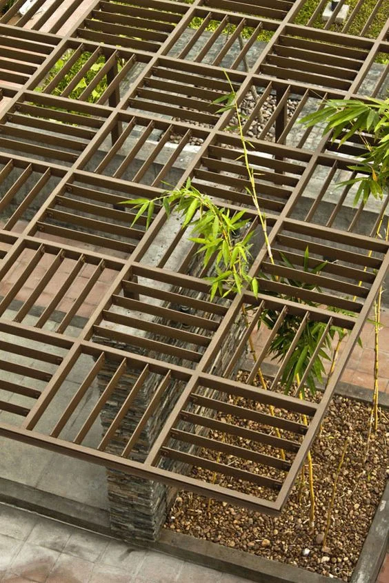 Are parallel lines feeling a bit too conventional for you? You have to try this grid roof design. It will instantly create a surprising, unique, and totally outstanding pergola!