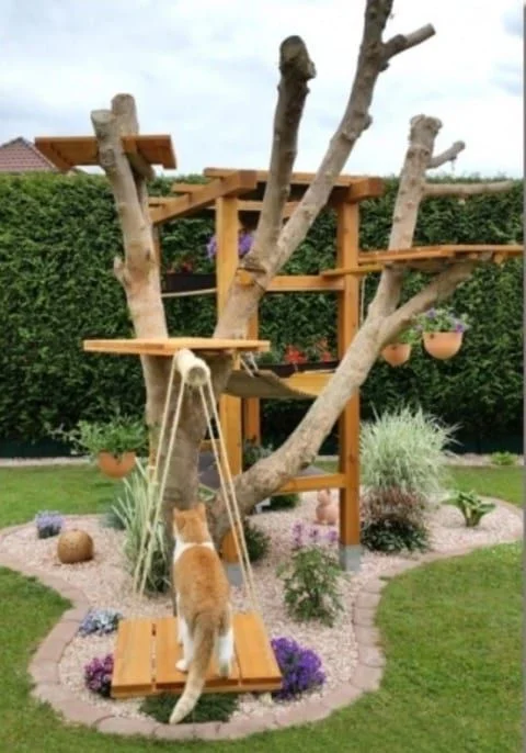 Cat parents who really know their cats will absolutely insist on having a cat tree in the backyard.