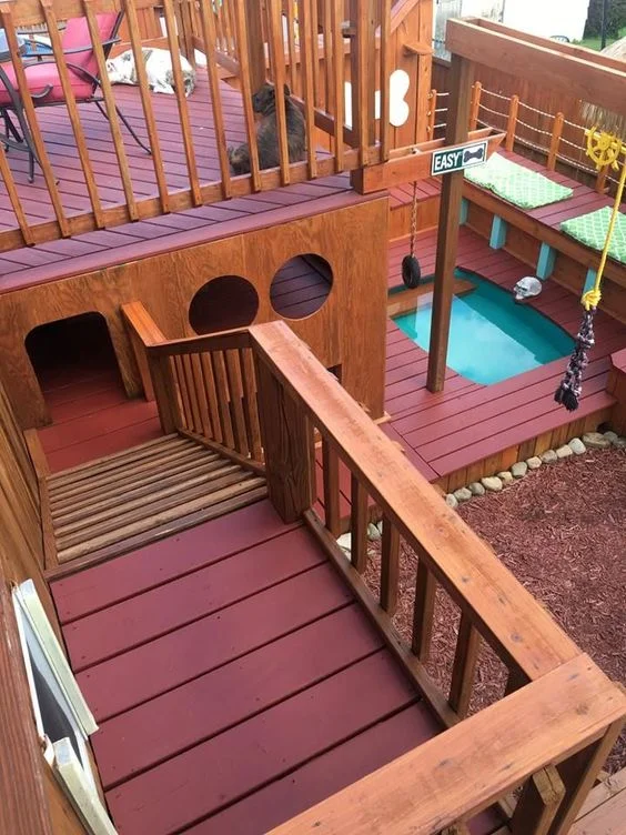 The whole structure comes complete with a doggie pool, spots for diving, tug toys, beds, areas for lounging, ramps, and even a digging area. It’s a wonderful way to spoil your dogs if you can!