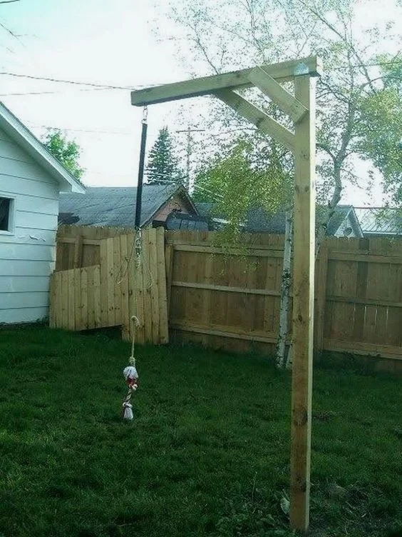 All you need is a sturdy post, some more wood for the beam, a spring, and of course, your dog’s favorite tug toy.