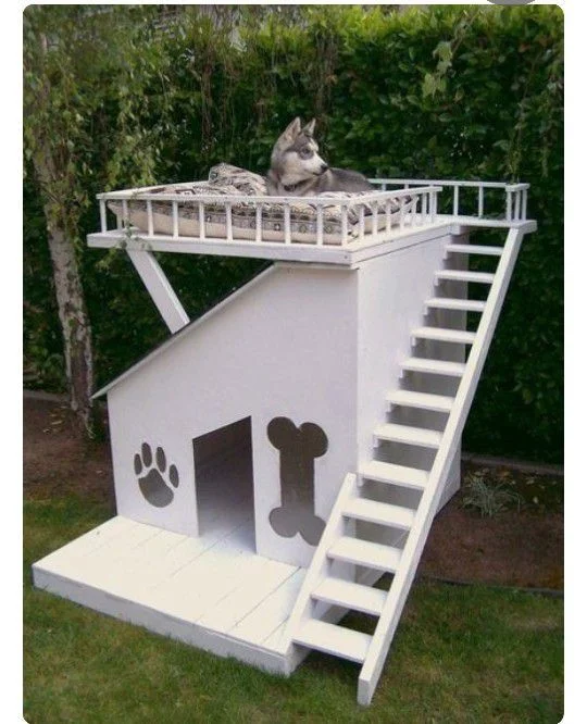 You can let your dog rule over their domain with this incredibly creative and charming doggie house that includes a loft.