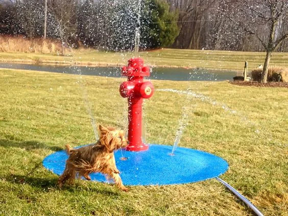 This pet-friendly version features a fire hydrant water fountain that’s surrounded by a few ground spouts. What a great summer treat for your fur babies!