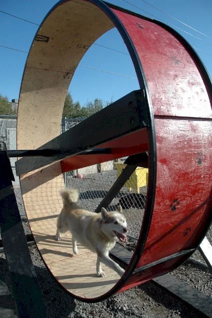 An exercise wheel is another fantastic addition to a pet-friendly backyard. If you have limited space for your dogs to run around and get their zoomies out, this wheel can give them all the running lane they need.