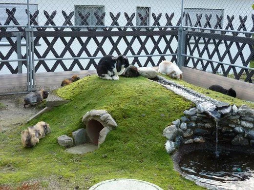 You can provide such a fun activity center for your rabbits! This engaging rabbit patch has tunnels, mini hills, rivers, and even a cooling pond.