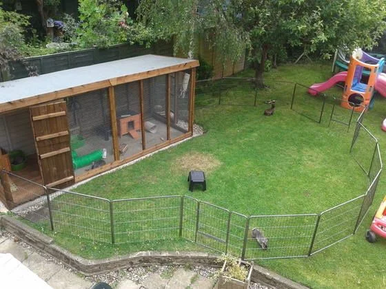 Do you keep your herd of rabbits in an outdoor hutch? You can expand their domain by adding a rabbit run right next to it. Just keep them safe inside the enclosure with some doggie fencing.